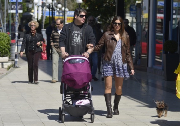 Η Σταματίνα Τσιμτσιλή με τον Θέμη Σοφό και την κόρη τους στην Κηφισιά