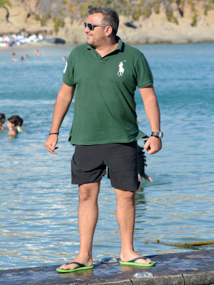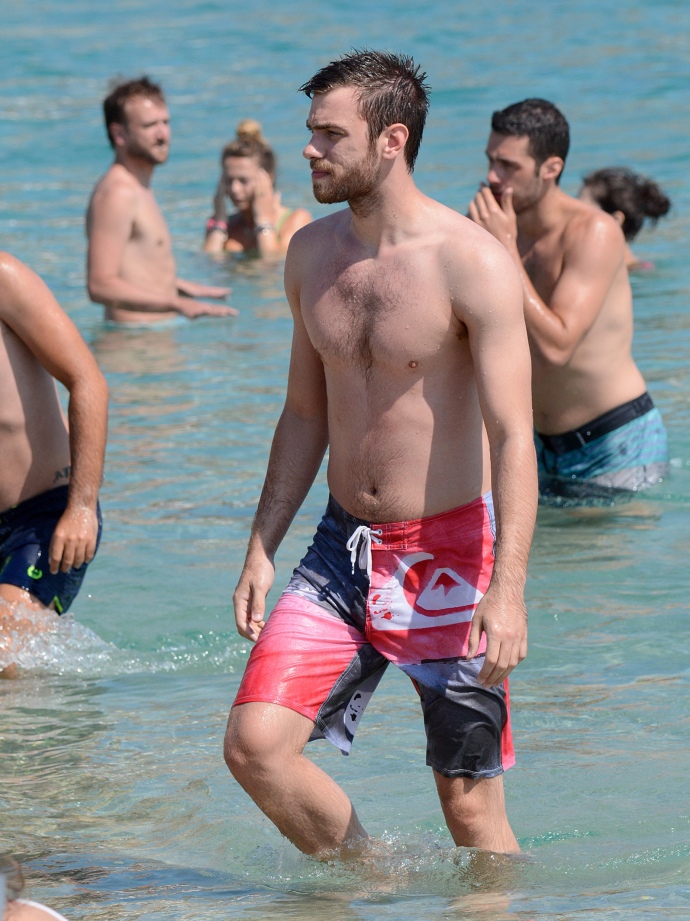 Ο μπασκετμπολίστας του Ολυμπιακού Βαγγέλης Μάντζαρης με μαγιό στη Μύκονο